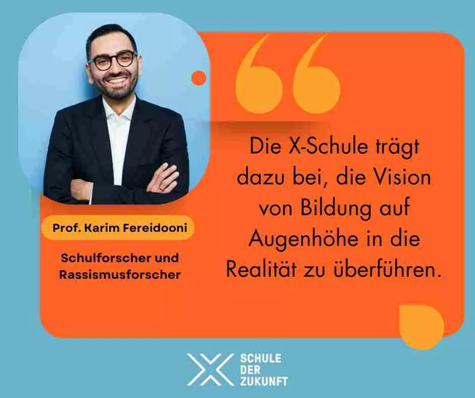 " Die X-Schule ist eines der innovativsten Konzepte für eine zukunftsweisende und chancengerechte Schule. Es ist extrem wichtig, dass es mutige Menschen gibt, die sich grundlegend für Bildung des 21. Jahrhunderts einsetzen.